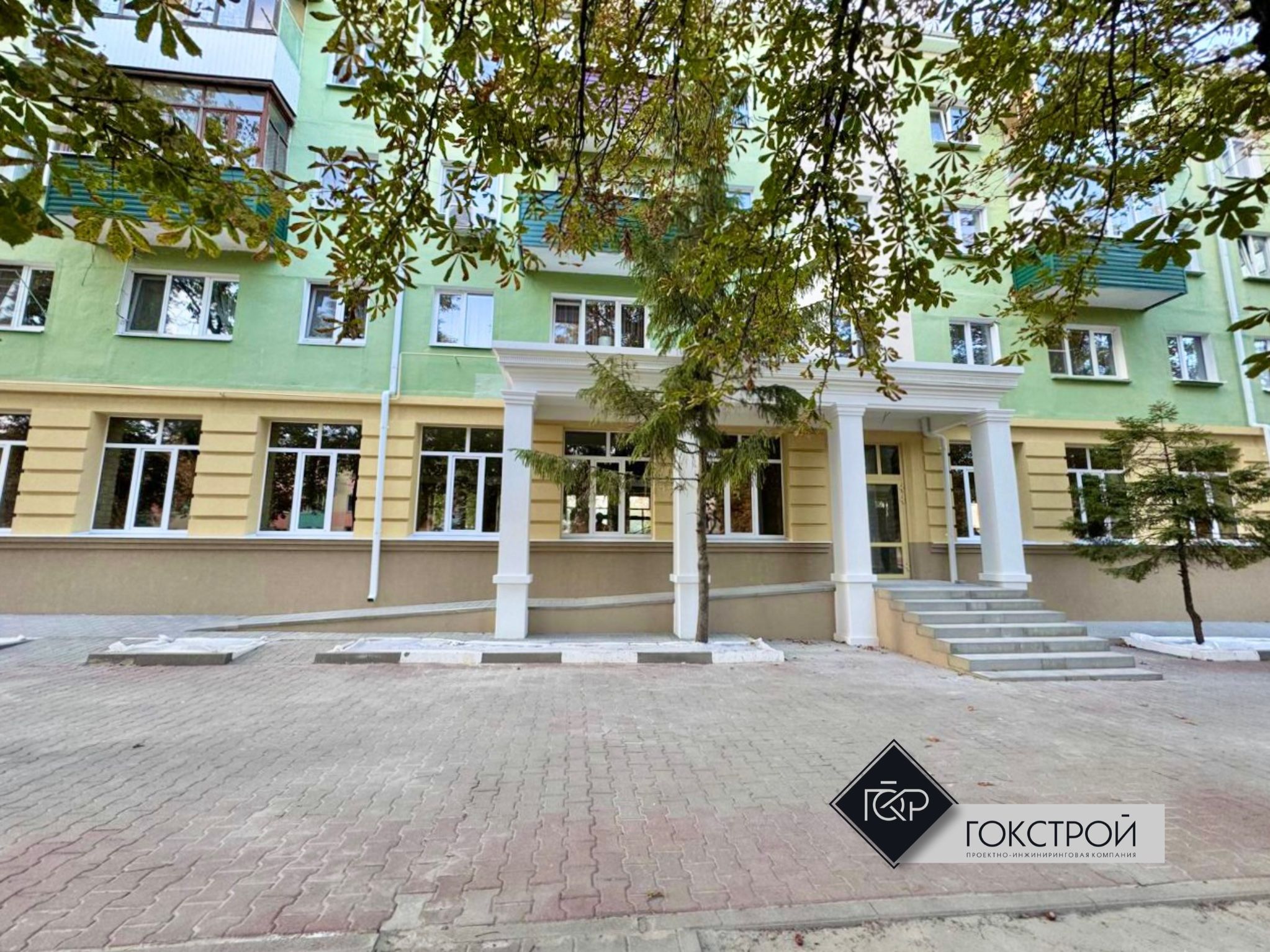 Обновили фасад, ступени, входную группу и крыльцо.